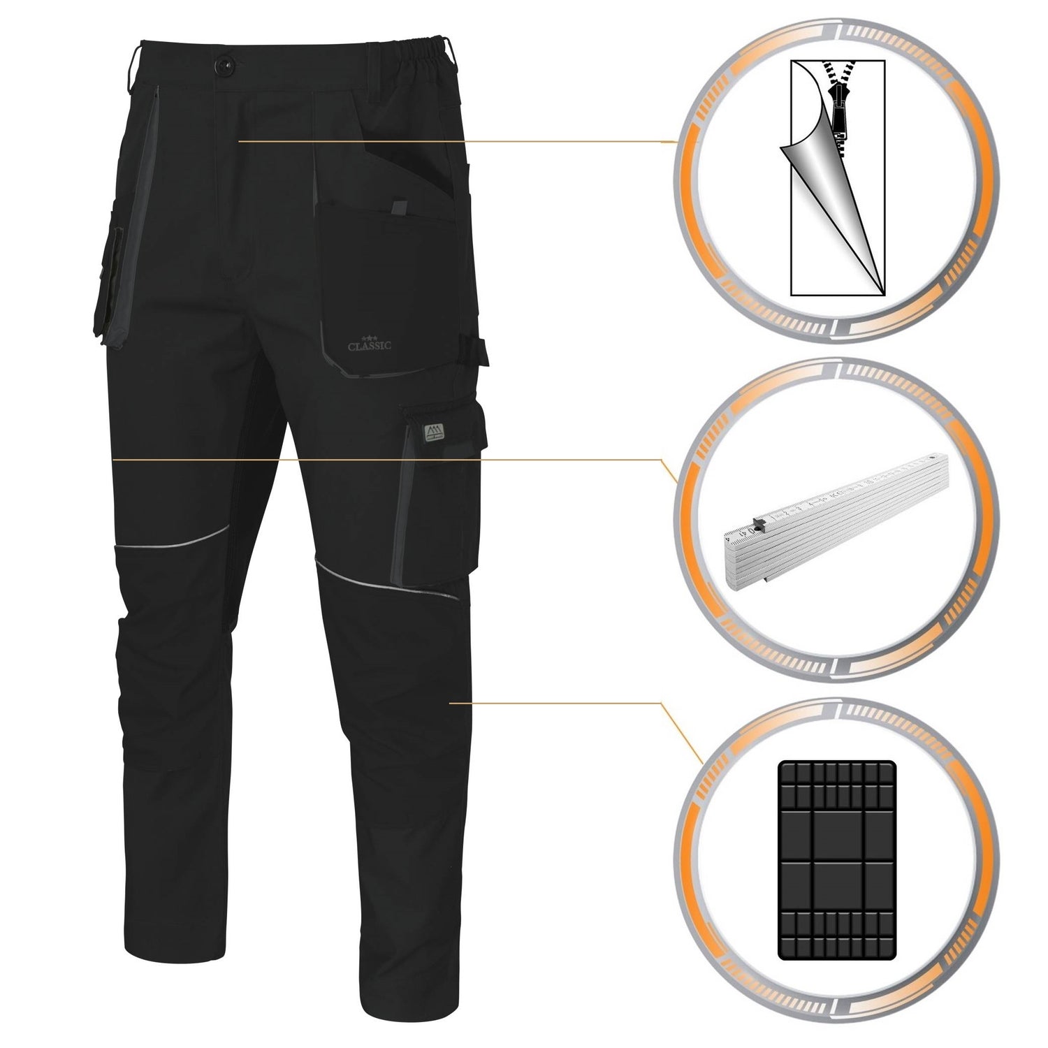 Arbeitshose CLASSIC Berufsbekleidung Hose SLIM Schwarz