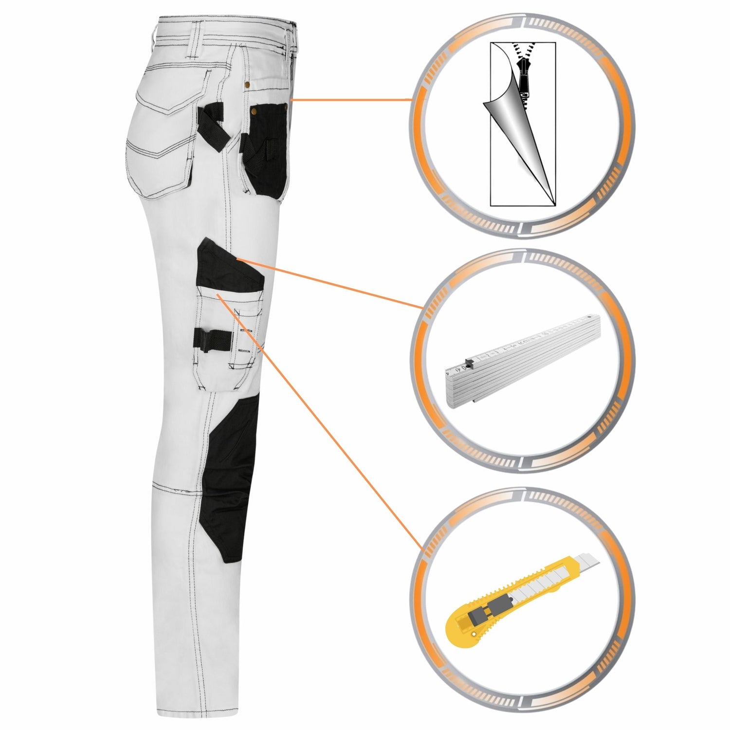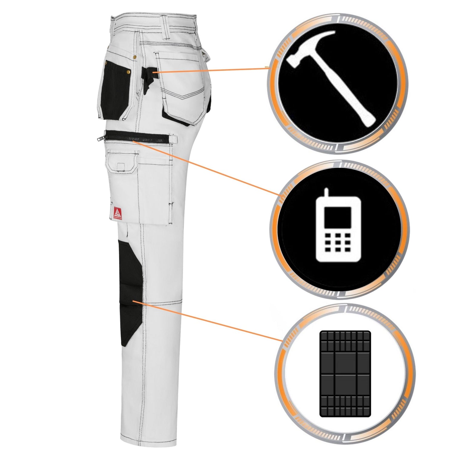 • 2 Kniepolstertaschen (Kniepolster werden von oben eingeschoben)